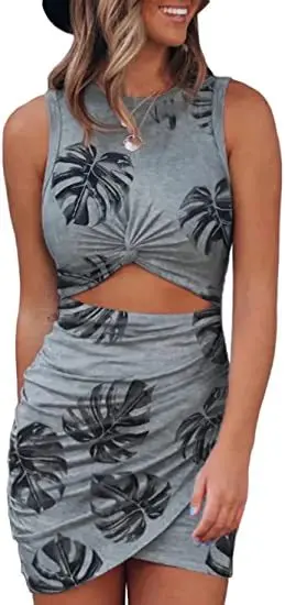 Women's Clothing Sleeveless Hollow Out Twist Bodycon Wrap Slim Fit Party Mini T Shirt Dress